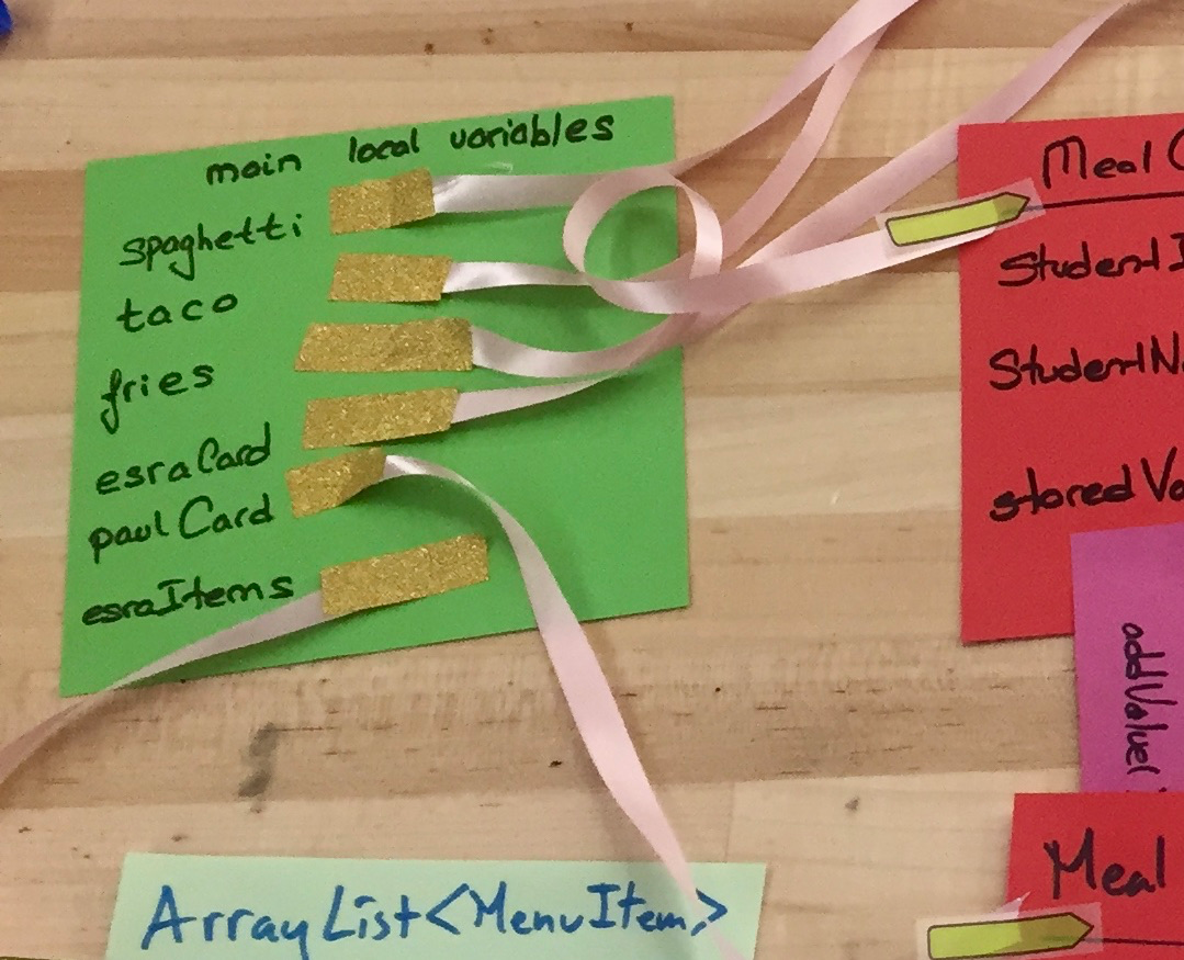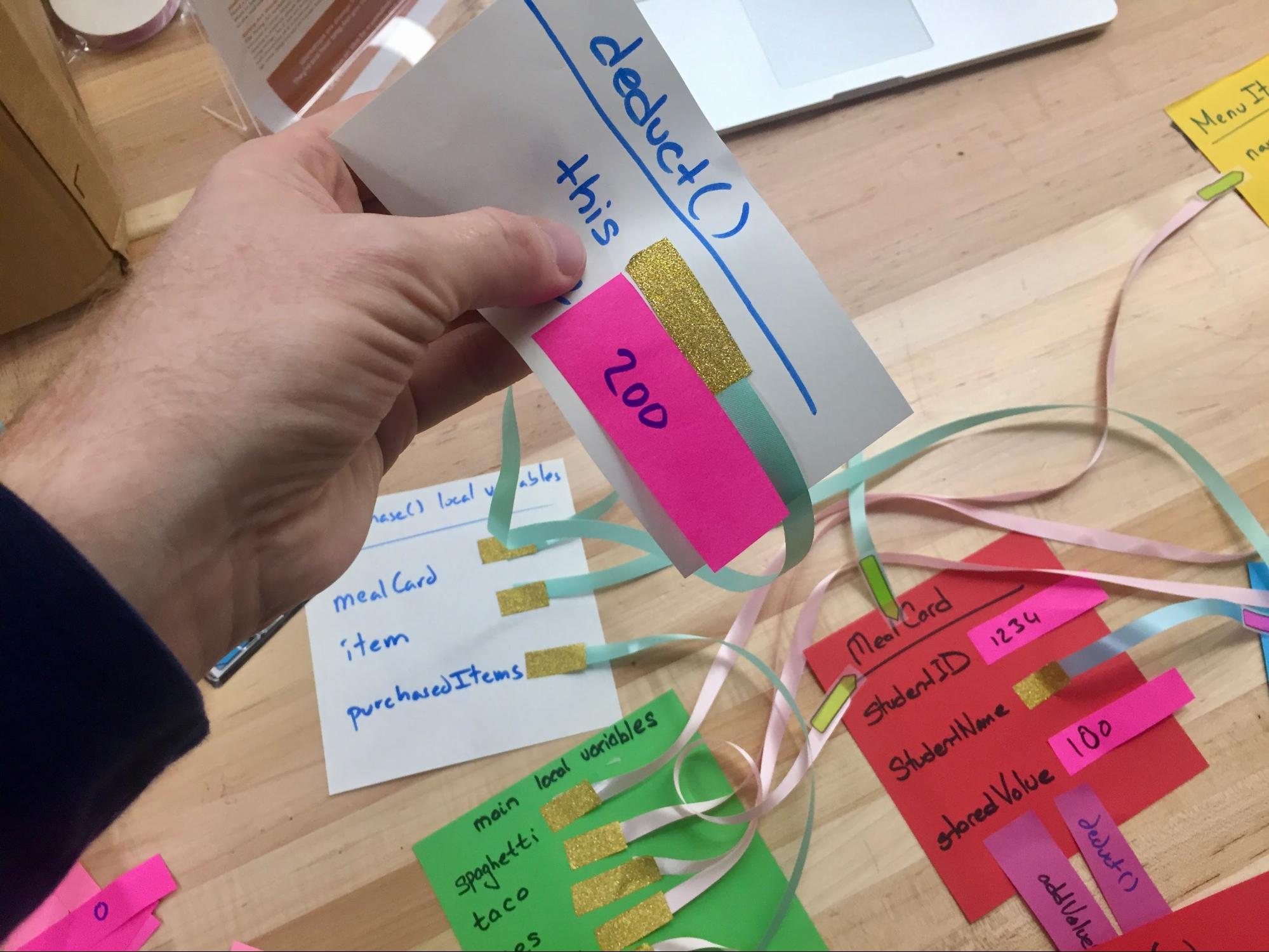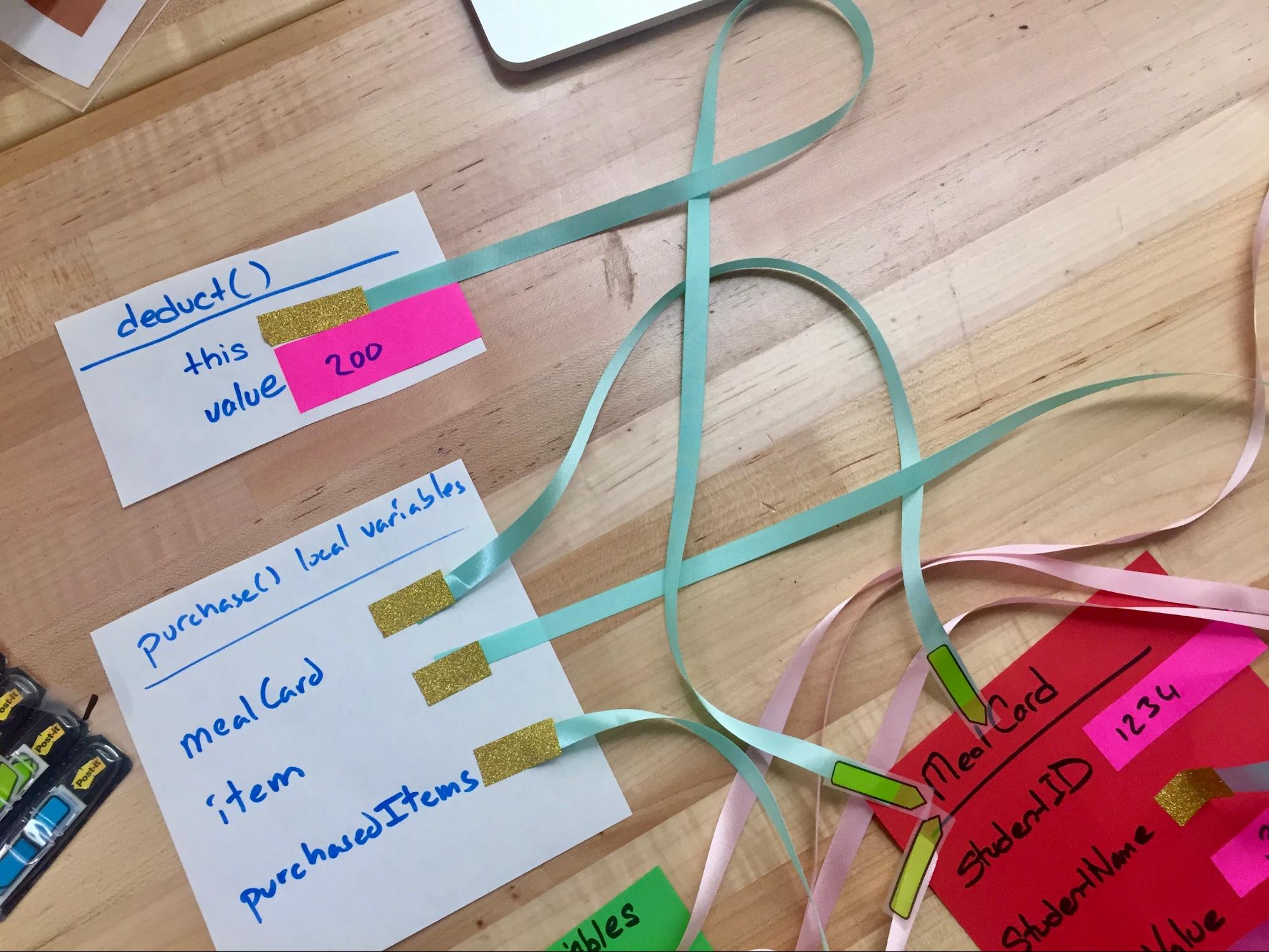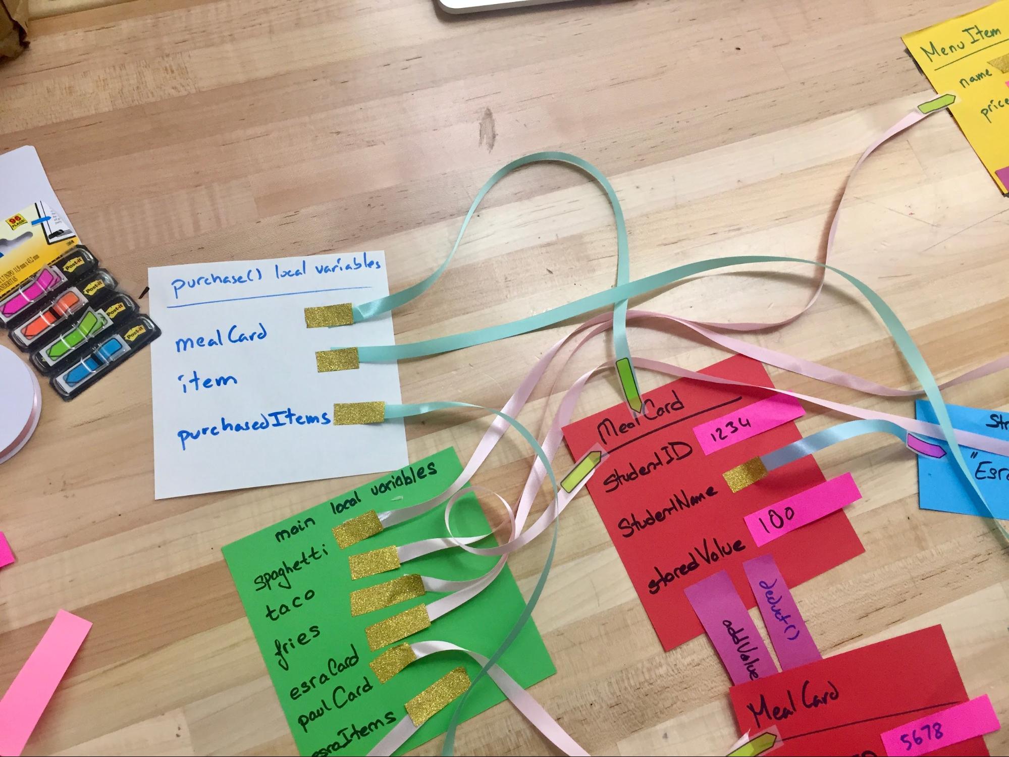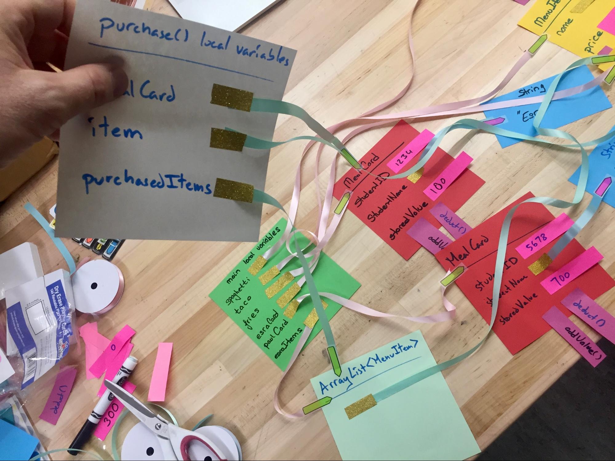 Here is a close-up with a new sheet of paper to represent the stack frame created when purchase()