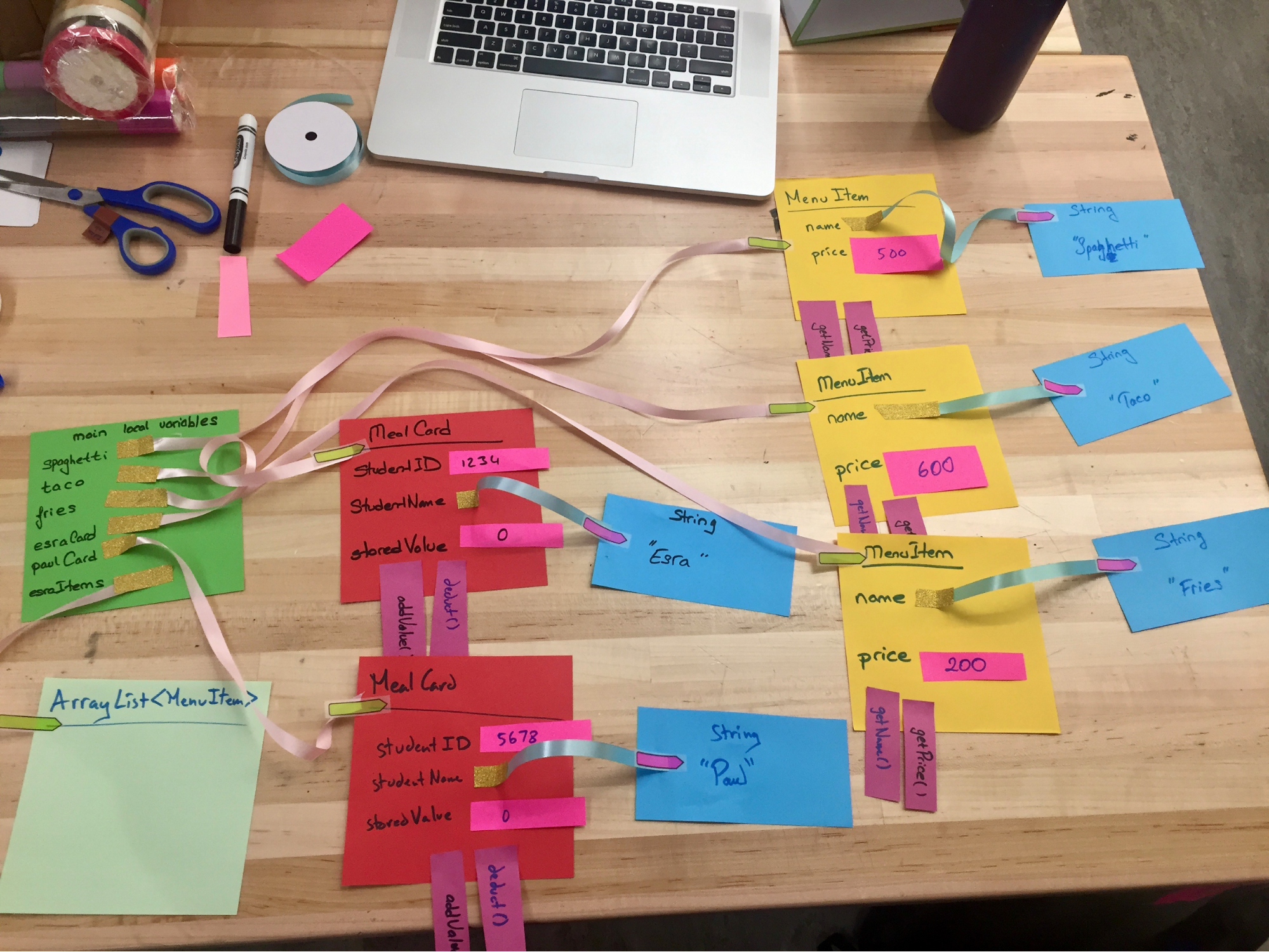 Here is a picture of what that whole object graph might look like when you are done. This is only to give you a sense of what you’re building, so you know if you’re on the right track — but don’t just copy this picture! Instead, work through the code and think it out for yourself, or the whole point of the activity is lost.